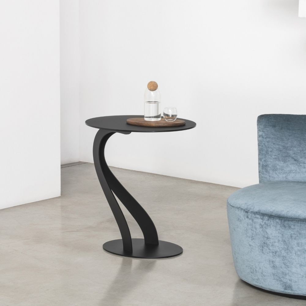 Swan è un tavolino curvilineo: il piano è ovale e la base è formata da due gambe ondulate, a ricordare la forma del cigno.